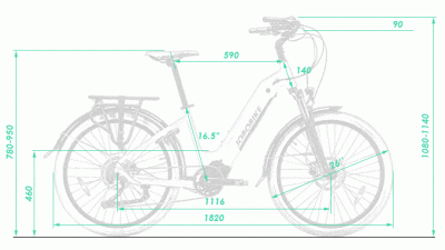 E-Bike Batterie des Citybike Helvetic-3000 Abmessungen des E-Bike City Helvetic-3000